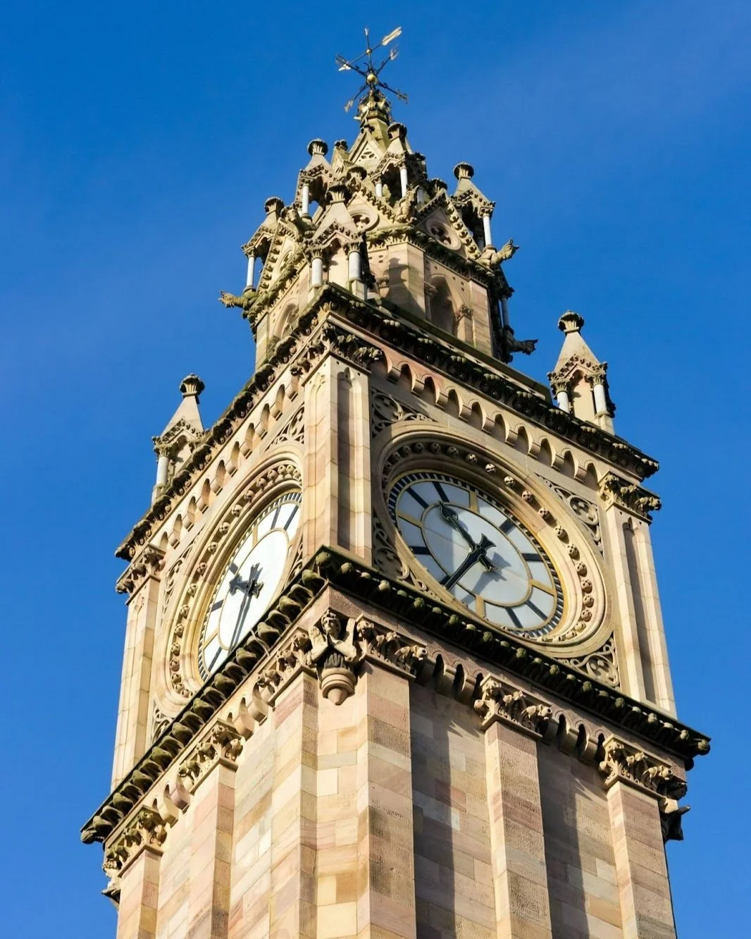 The Albert Clock is an impressive clock tower that stands at 113 feet tall. It was originally built as a memorial to Queen Victoria's late Prince Consort, Prince Albert and includes a combination of French and Italian gothic style architecture.